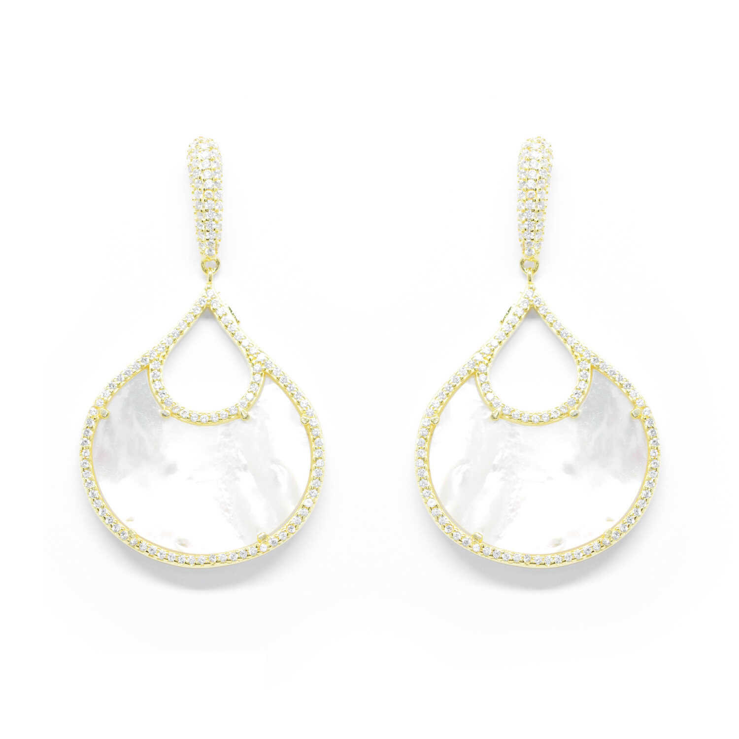 Silver pendant earrings with K18 yellow gold plating in a wonderful style with mother of pearl and white cubic zirgons. Ideal for evening girly- boho chic looks.