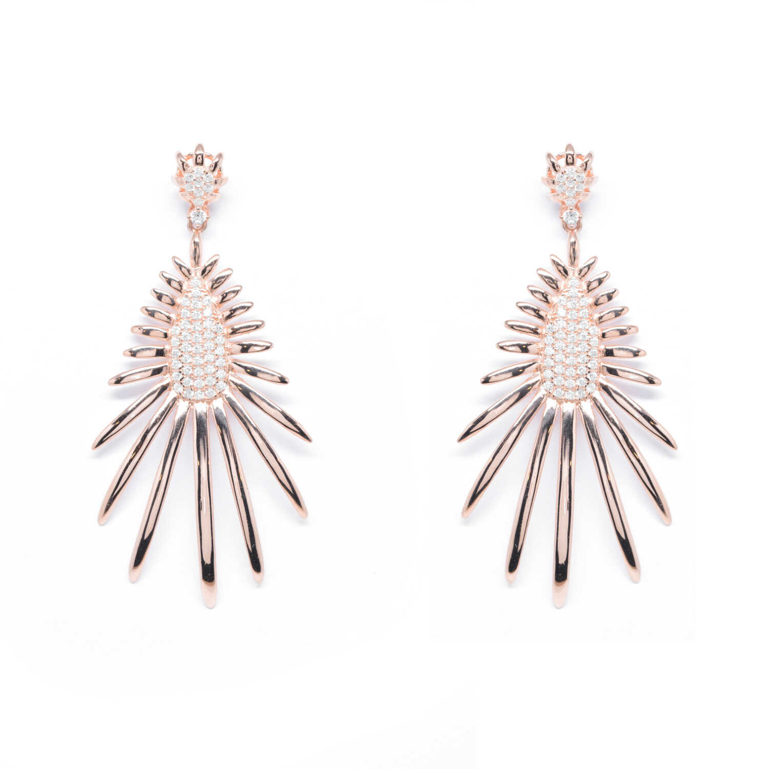 Silver pendant earrings with K18 rose gold plating and cubic zirgons. Ideal for evening elegant chic unique looks.
