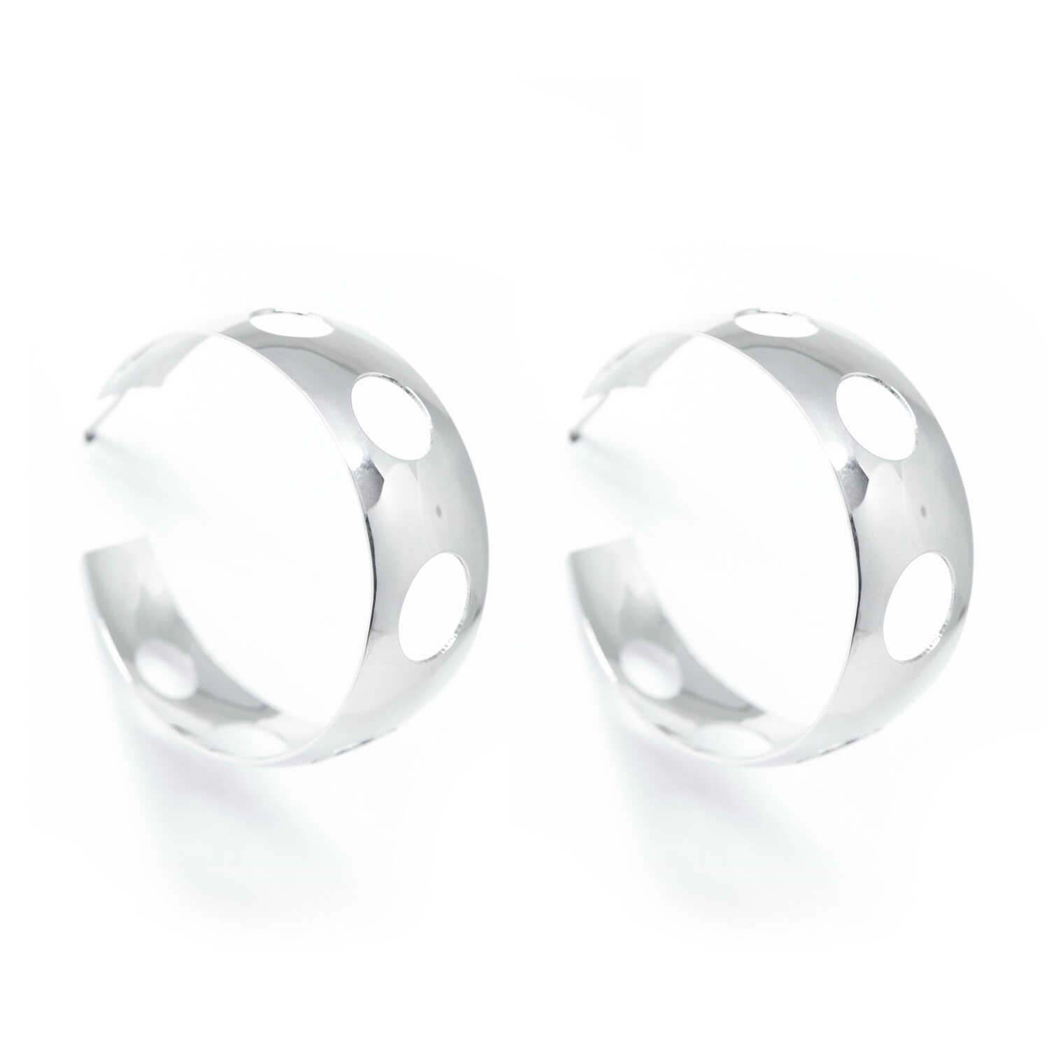 Silver hoop earrings with a unique star pattern carving. Ideal for evening and evening elegant appearances.