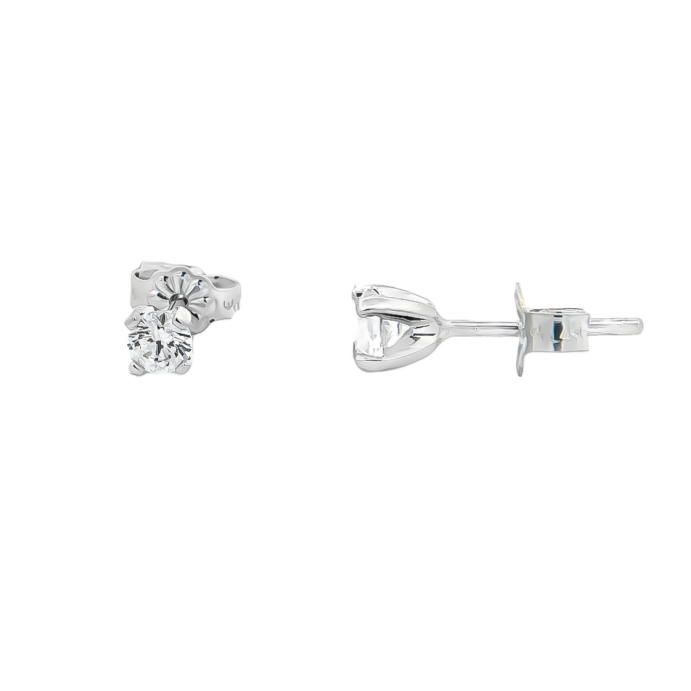 18k white gold single stone earrings on the ear with brilliant cut diamonds. A pair of earrings - a symbol of timeless value and excellent aesthetics for elegant chic looks. Diamonds total 0.40ct