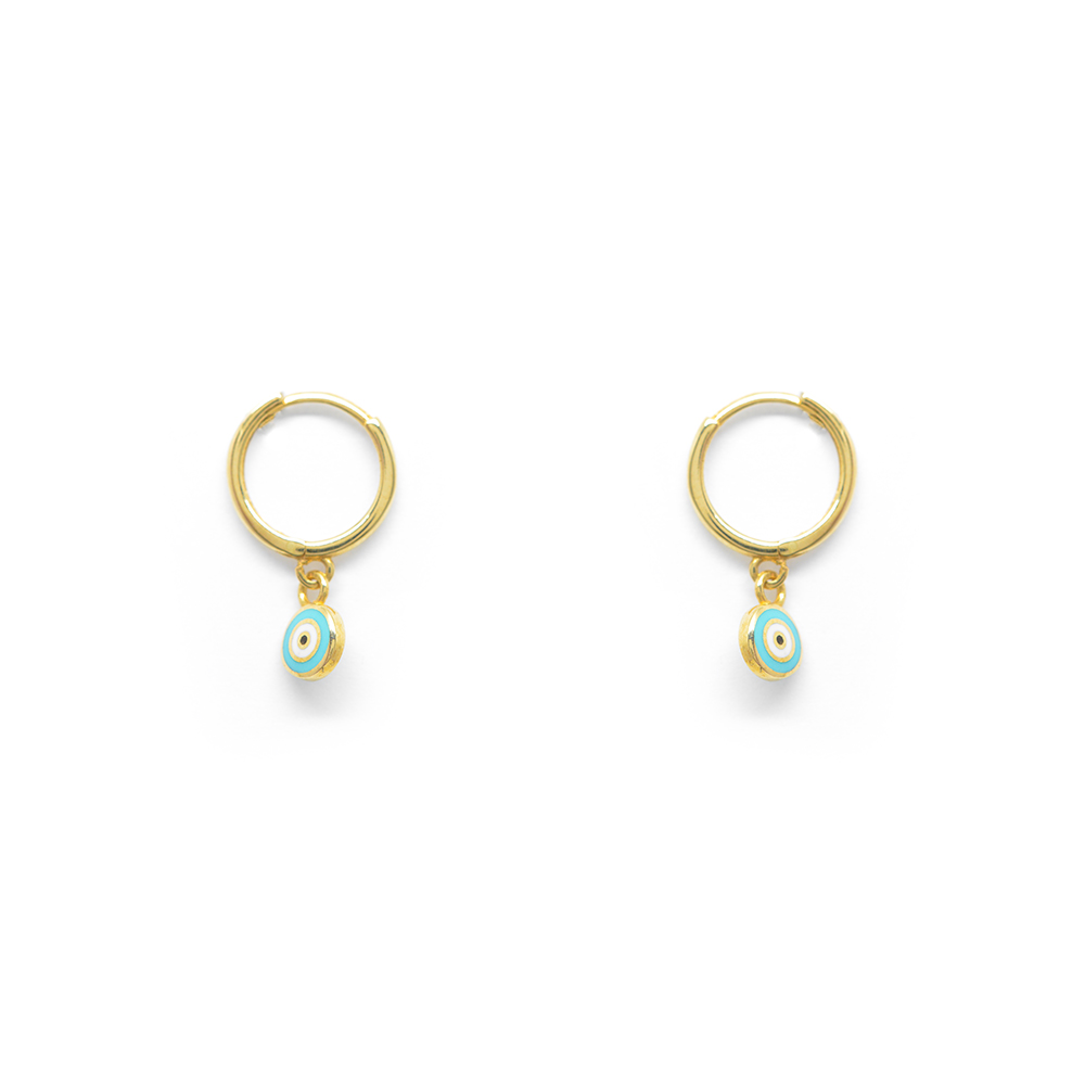 Hoop earrings in a girly shape and a turquoise enamel eye that will complete a fashion statement look in the best way. Ideal for everyday and urban chic looks