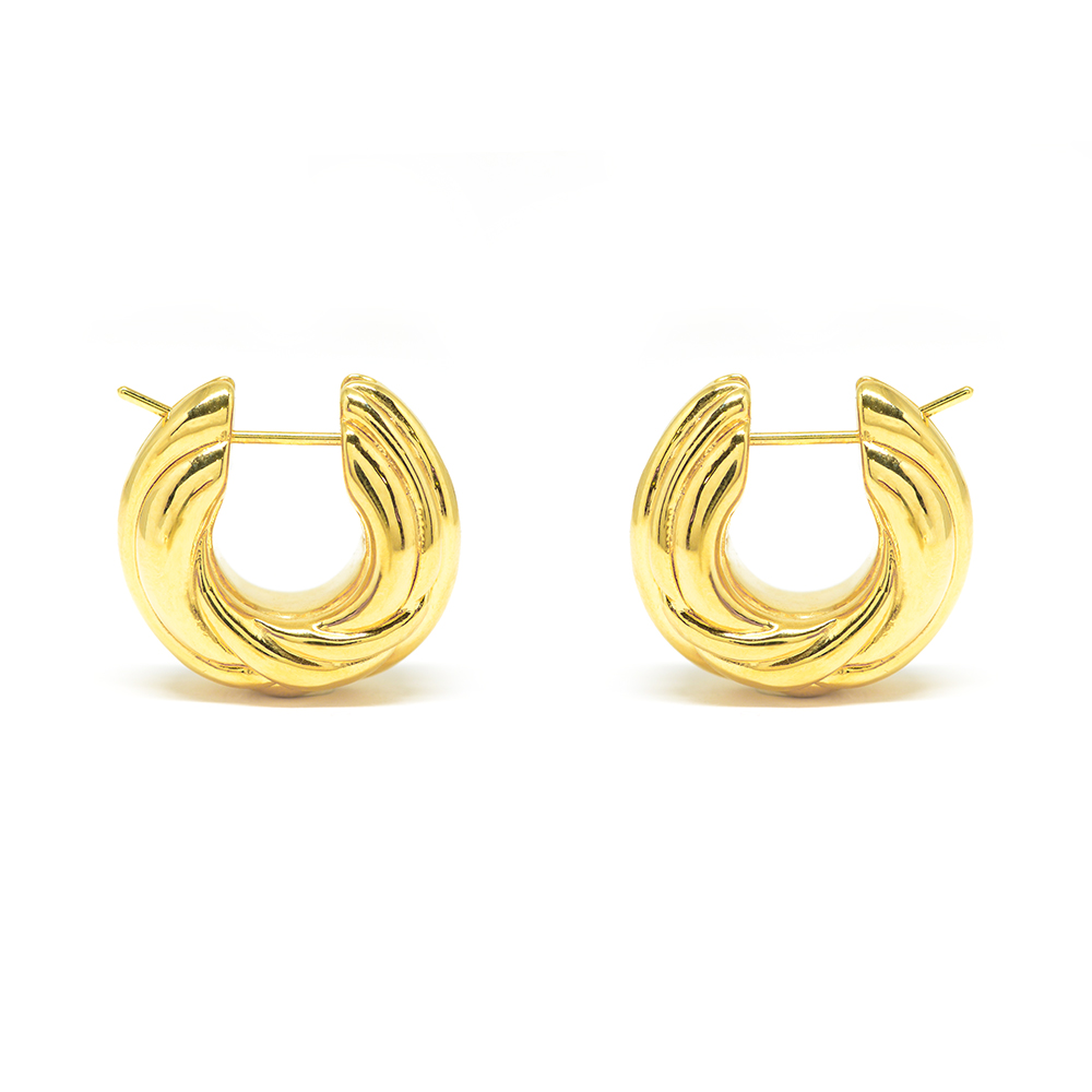 Hoop earrings in 18k yellow gold bull puffed and exquisite craftsmanship that gives a very shiny finish in an imposing striped design A pair of earrings of timeless value with an urban chic style that will highlight with their shine your everyday look.