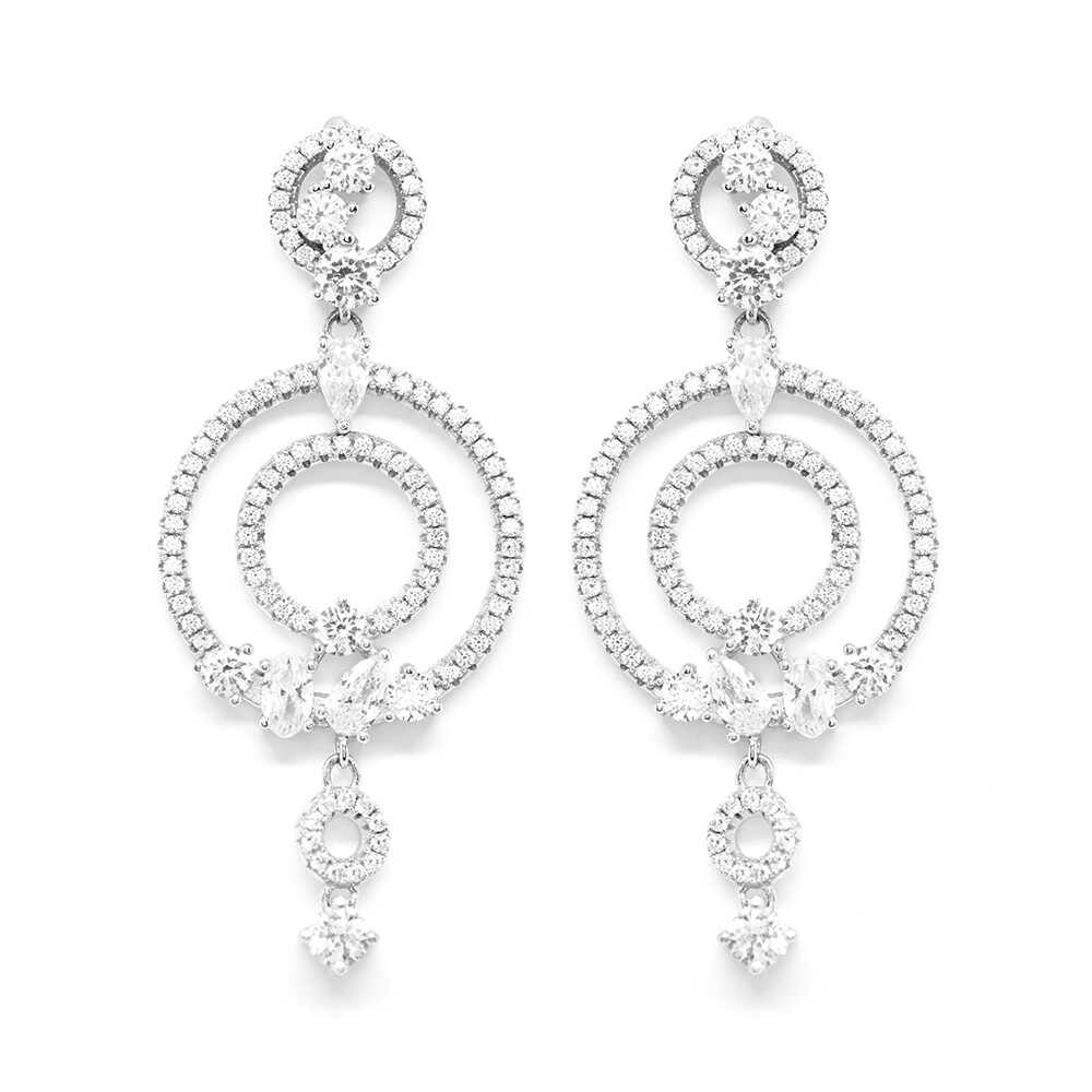 Long chandelier earrings in 925 silver with white platinum K18 white gold and unique shiny details of cubic zirgons. Ideal for evening and evening elegant appearances.