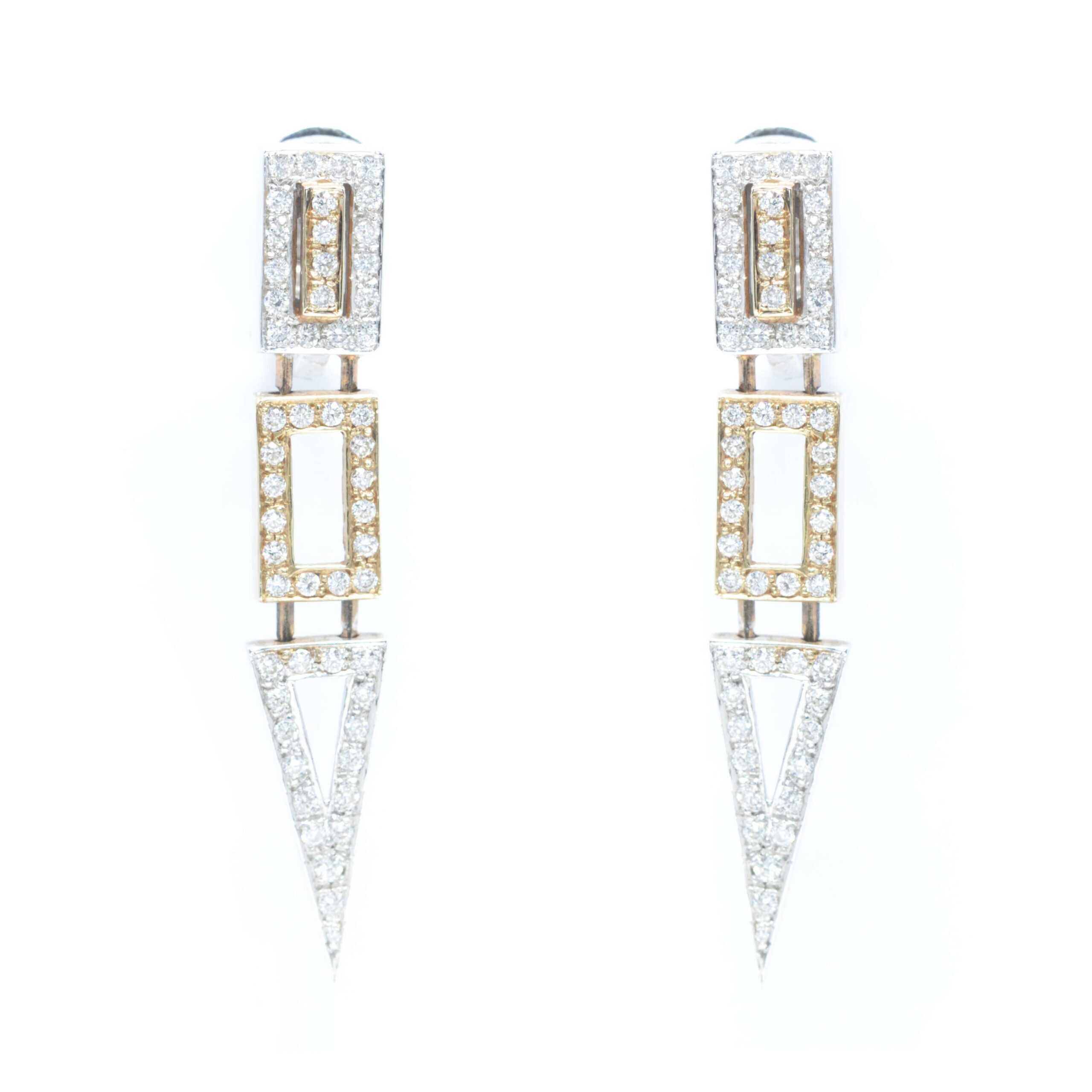 Gold dangling earrings in an excellent minimal design with brilliant cut diamonds. Brilliants 1.29ct.