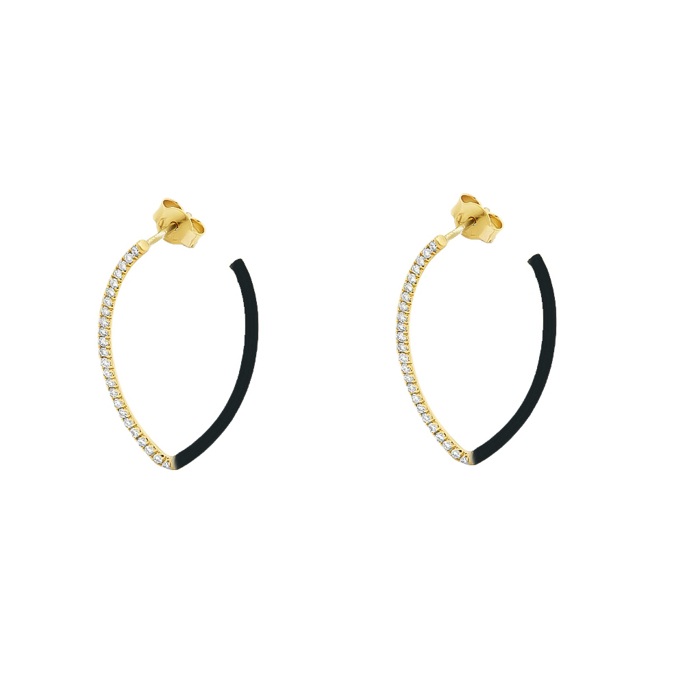 Hanging earrings in an elliptical design with diamonds and enamel in black color that will complete a fashion statement look in the best way. Ideal for timeless and urban chic looks. Brilliants 0.44ct