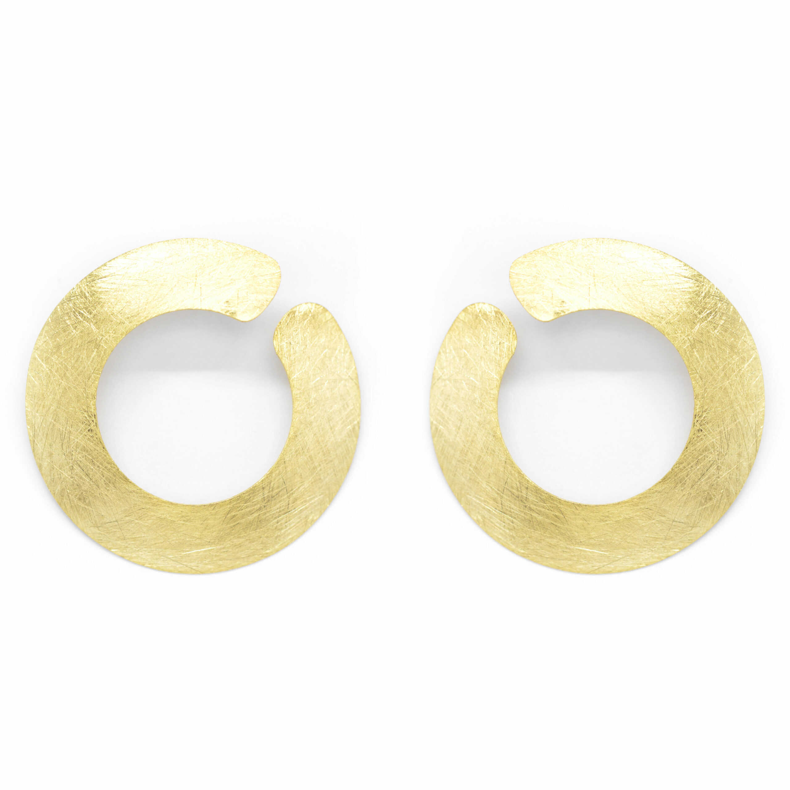Yellow gold matte satin hoop earrings in an excellent minimal design. Ideal for everyday impressively bright looks.