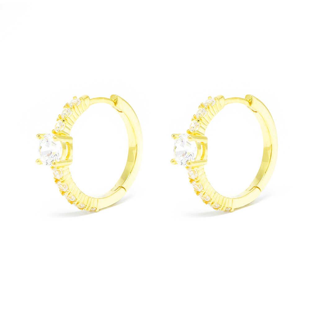 Hoop earrings made of 925 silver and K18 yellow gold plating in an urban chic design and a unique shine thanks to the shiny white cubic zirgons. Ideal for glam chic looks.