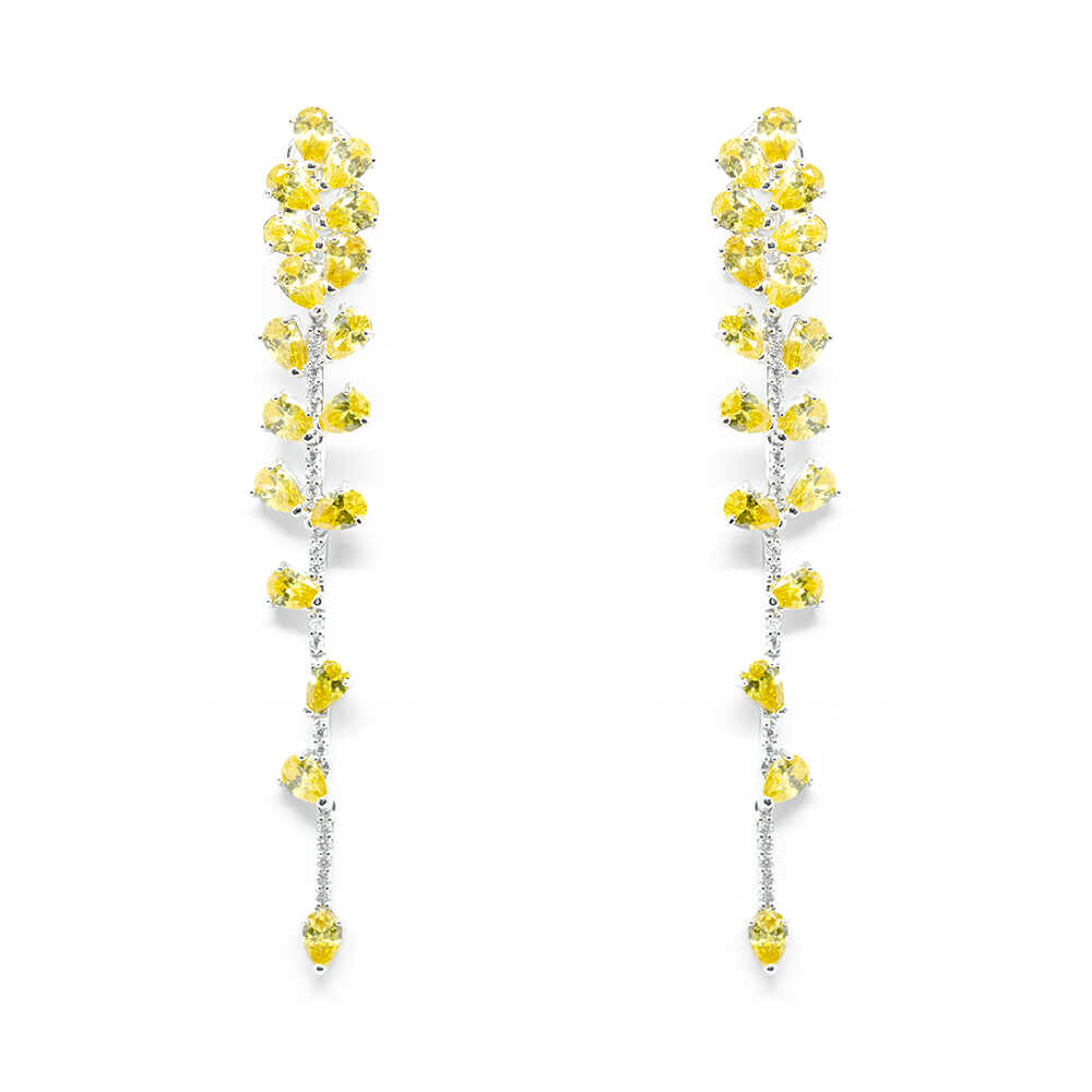 Elegant silver earrings with white and yellow stones