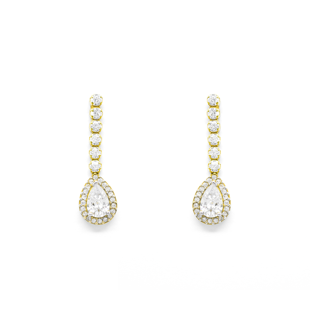Earrings hanging in a rosette design from yellow gold in an all time classic design and a refined drop shape with white cubic zirgons that will emphasize your elegant feminine side. Ideal for all day chic bright looks. Bridal collection