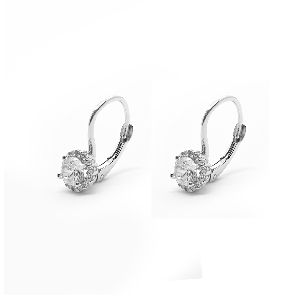 Earrings elegant hanging rosettes with white zirgons in 14k white gold