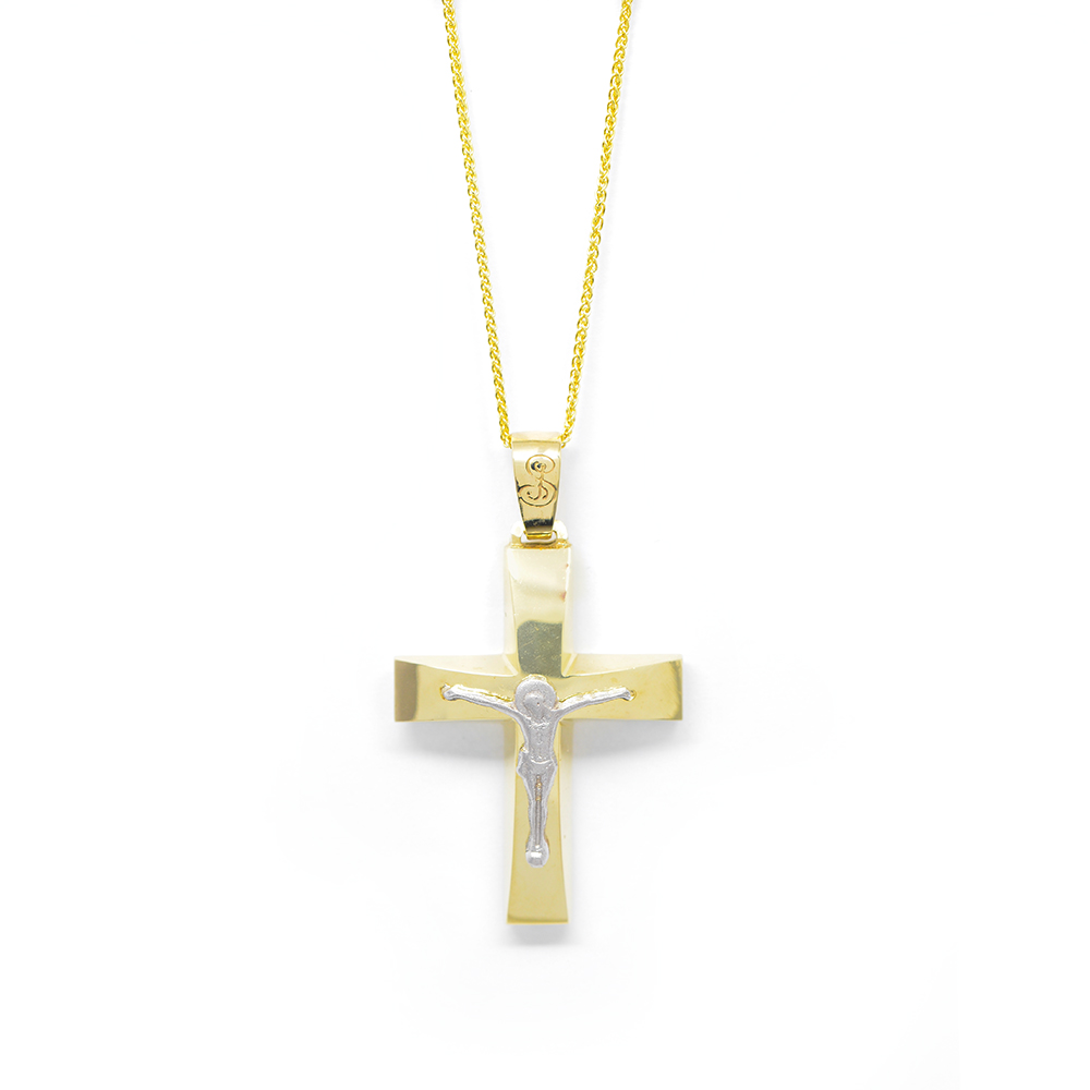Cross gold shiny in two-tone gold with the cross in a classic design. Double-side. Also ideal for baptism.