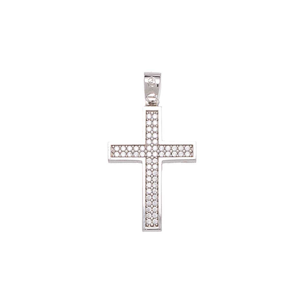 White gold cross, shiny with shiny pave details studded with cubic zirgons in a minimal chic design. Also ideal for baptism.