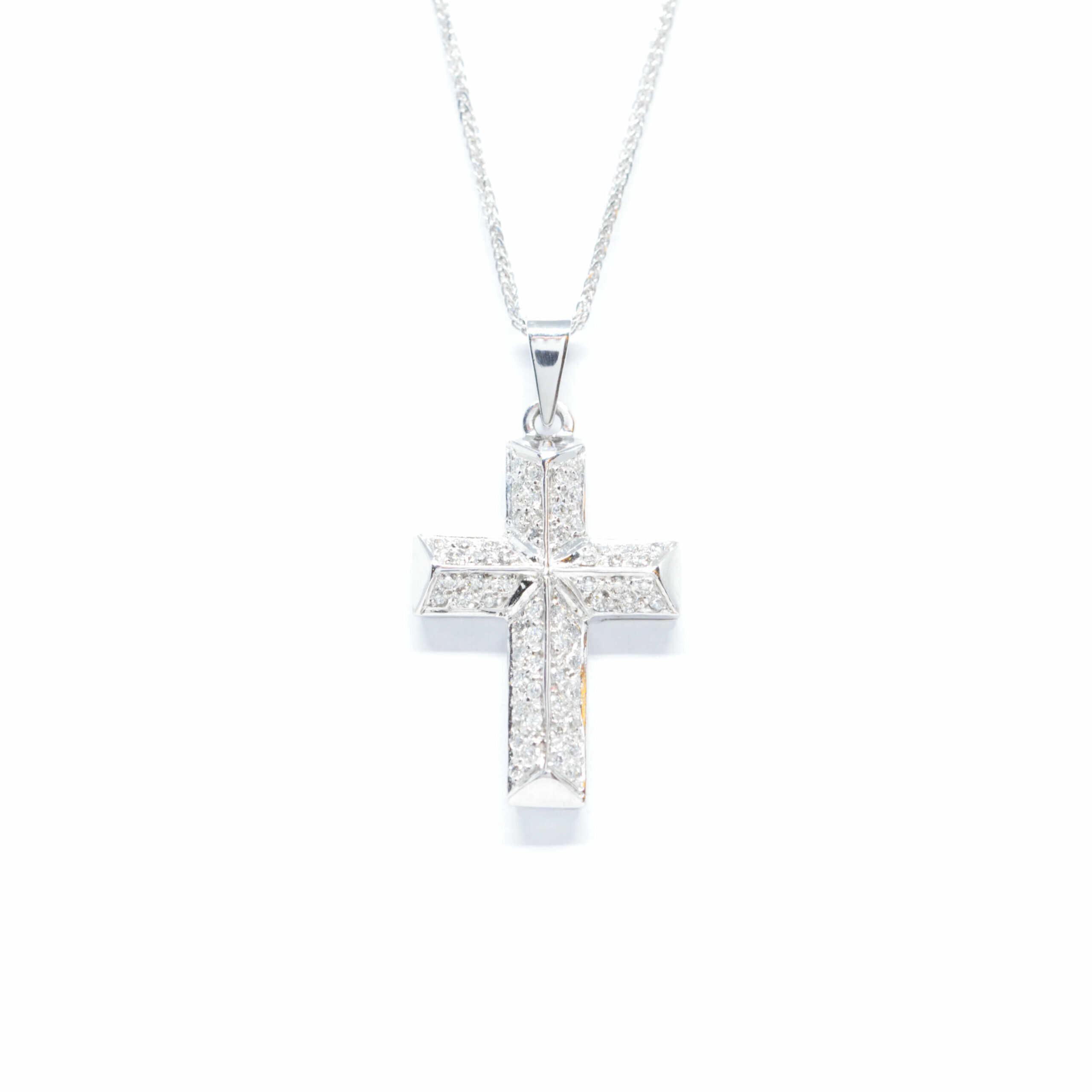 Gold cross with pave studding and brilliant cut diamonds in an excellent minimal design. Brilliants 0.38ct. Also ideal for baptism.