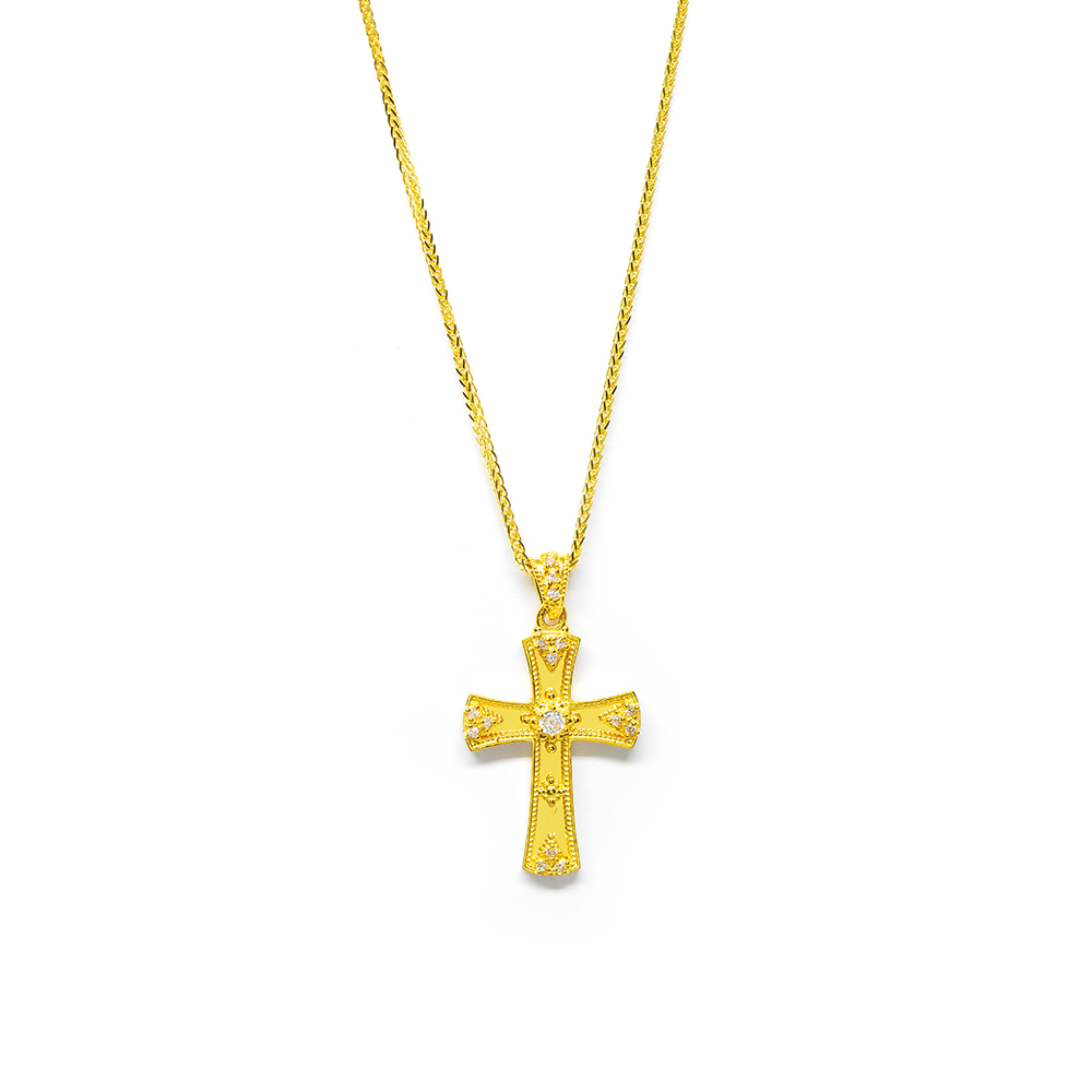 14k yellow gold mirror effect cross with zirgons