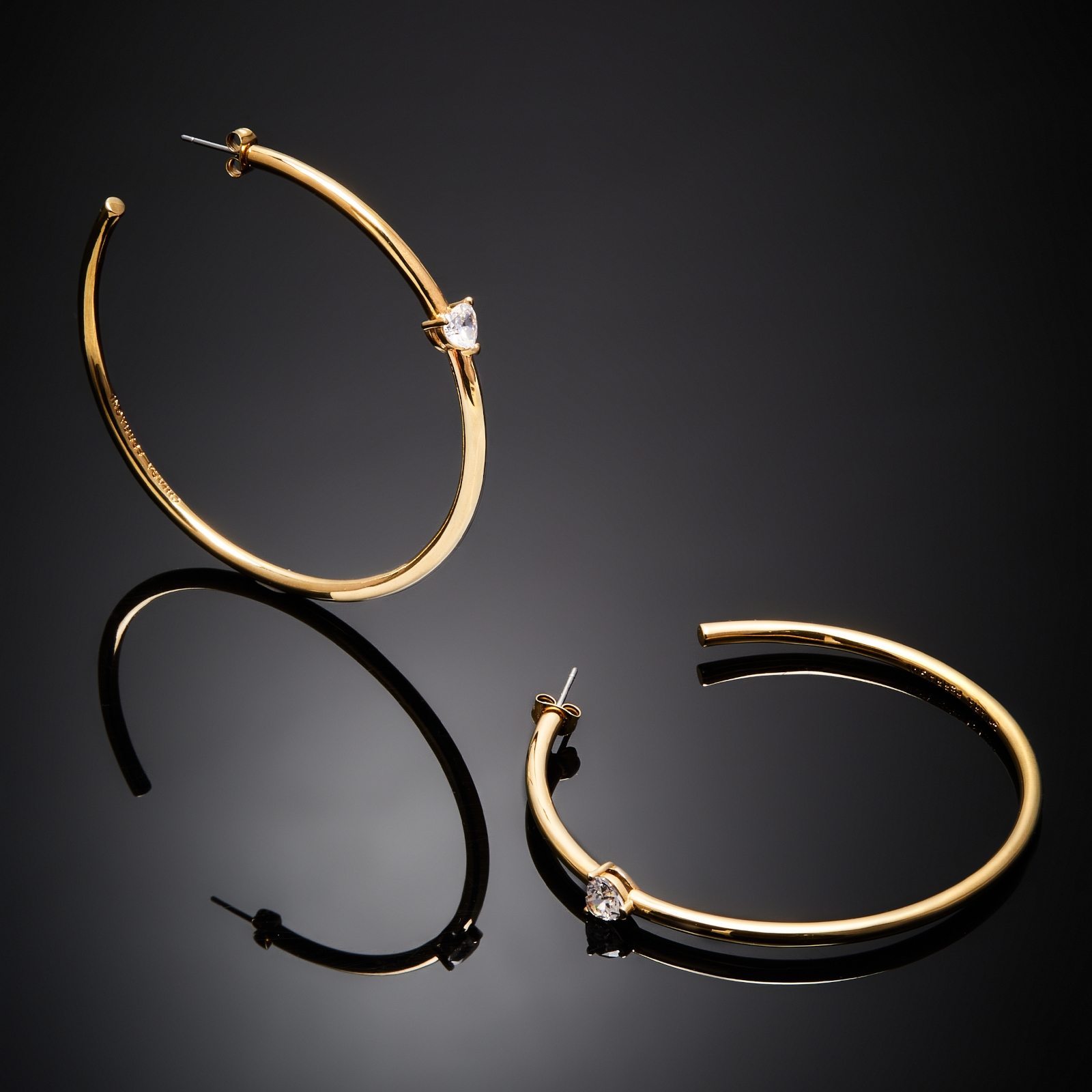 Gold color heart earrings with white stone. Comes with CHIARA FERRAGNI packing box and 2 YEAR WARRANTY from the official CHIARA FERRAGNI dealership.