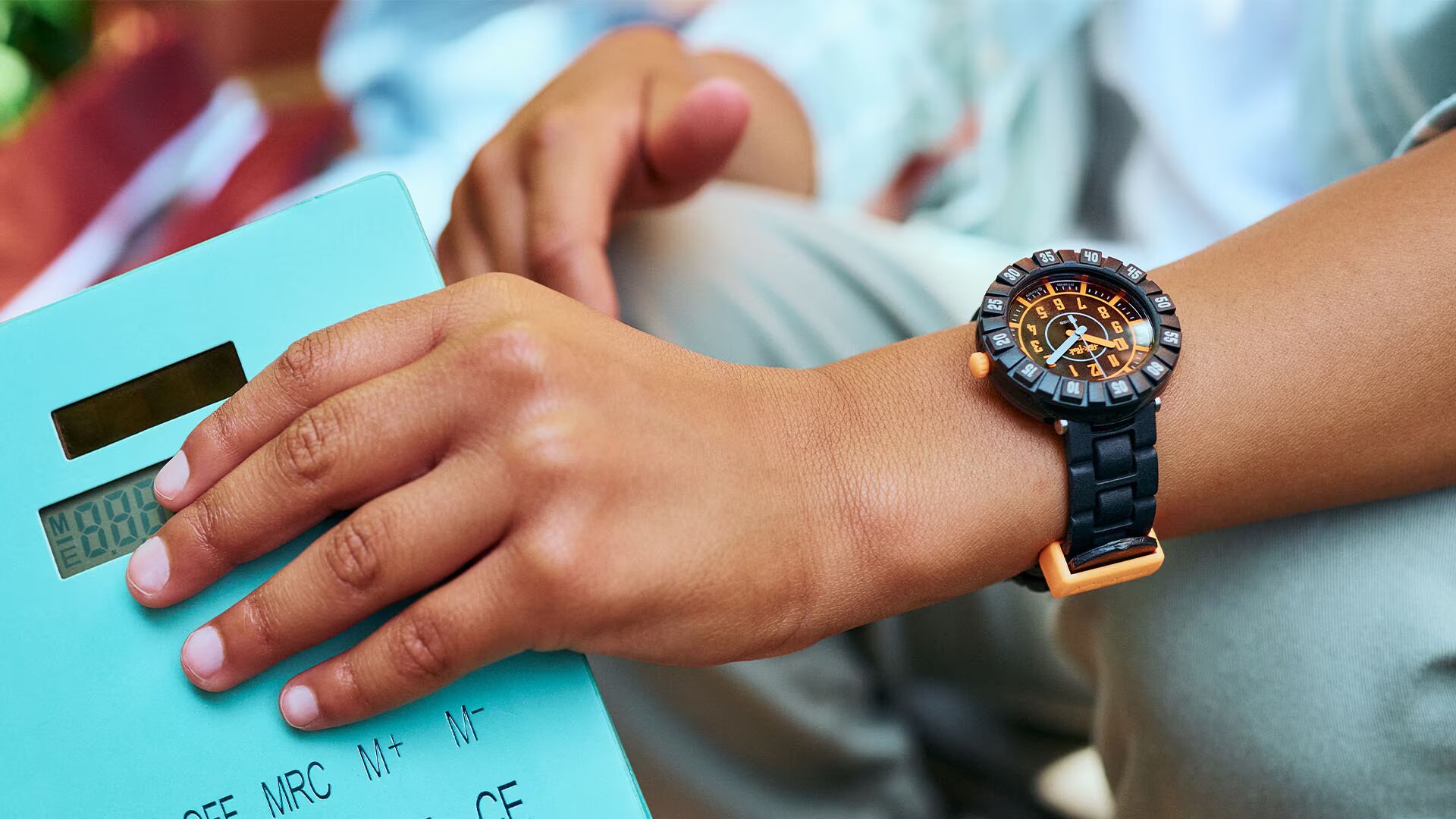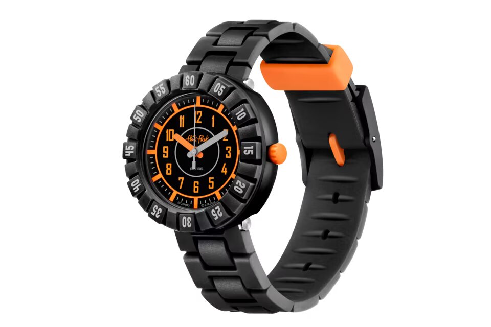 A striking combination of enigmatic black with neon orange elements, makes the CATCH U the perfect accessory when you're heading to a spaceship cockpit. The neon details on the dial, along with the rotating bezel, make learning the time fun and easy!