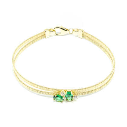 Βραχιόλι εντυπωσιακό από κίτρινο χρυσό 14k με πράσινα και λευκά zirgons