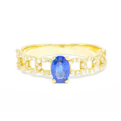 Δαχτυλίδι μοντέρνο διαμαντένιο με oval ζαφείρι από κίτρινο χρυσό 18k