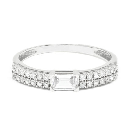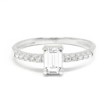 Δαχτυλίδι μονόπετρο εντυπωσιακό από λευκόχρυσο 14k με emerald zirgon