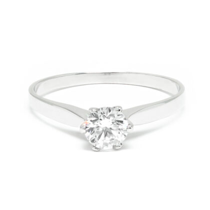 Δαχτυλίδι μονόπετρο κλασσικό από λευκόχρυσο 14k