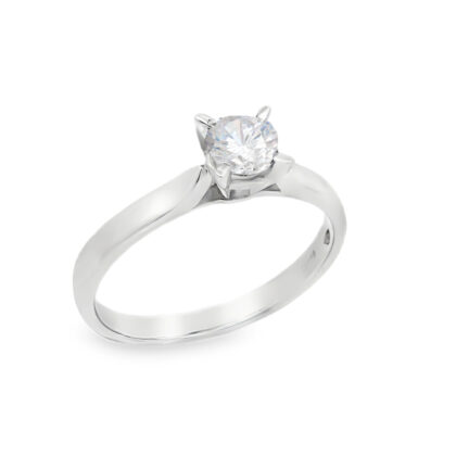 Δαχτυλίδι μονόπετρο κλασσικό με διαμάντι από λευκόχρυσο 18k