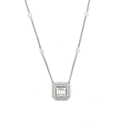 Κολλιέ αριστοκρατικό emerald με brilliants και baguettes από λευκόχρυσο 18k