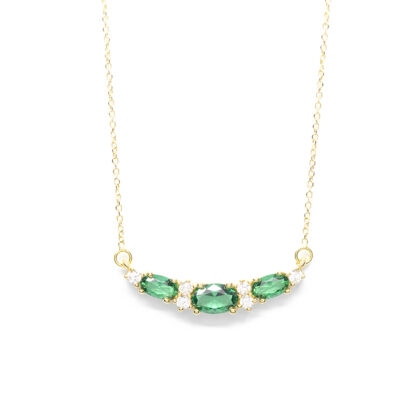 Κολλιέ από χρυσό 14k με μπαρετα elegant με λευκά και πράσινα cubic zirgons