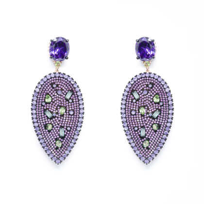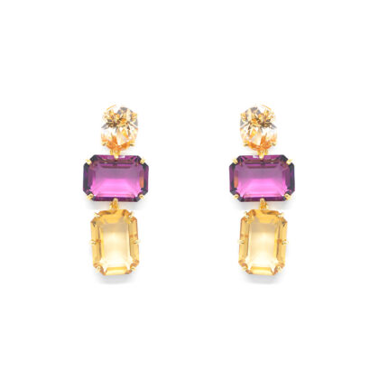 Σκουλαρίκια chandelier ροζ χρυσά με μωβ πέτρες