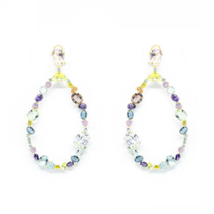 Σκουλαρίκια chandelier χρυσά με πολύχρωμες πέτρες