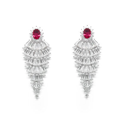 Σκουλαρίκια elegant ασημένια με λευκές και κόκκινες πέτρες