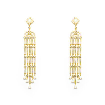 Σκουλαρίκια chandelier χρυσά με λαμπερά cubic zirgons