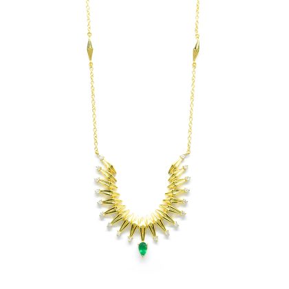 Κολλιέ μοντέρνο από κίτρινο χρυσό 18k με διαμάντια και σμαράγδι navette