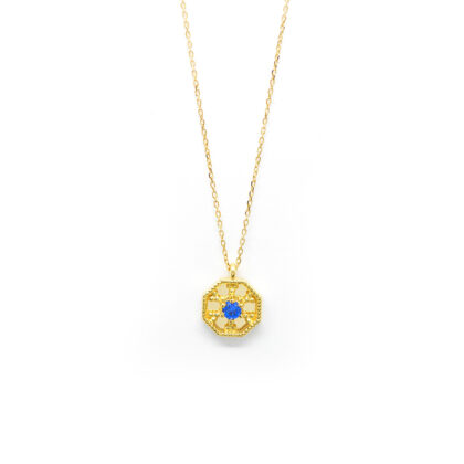 Κολλιέ μοντέρνο από κίτρινο χρυσό 14k με μπλέ πέτρα