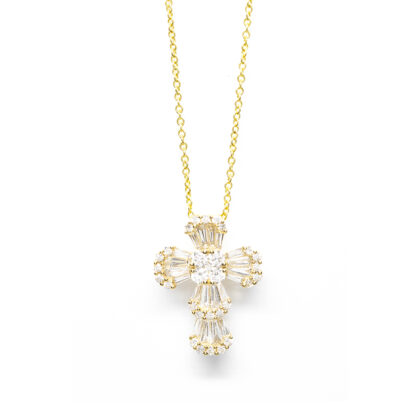 Κολλιέ με σταυρό εντυπωσιακό από κίτρινο χρυσό 18k με διαμάντια
