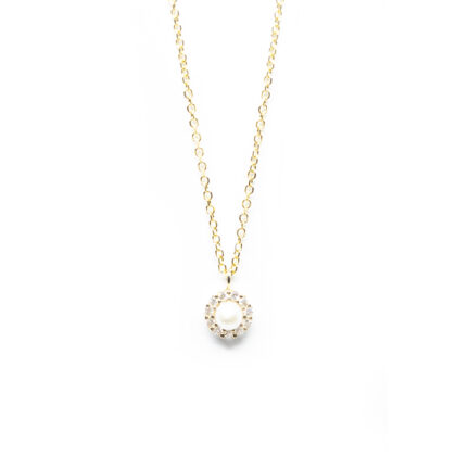 Κολλιέ από χρυσό 14k με μαργαριτάρι και zirgon σε ροζέτα