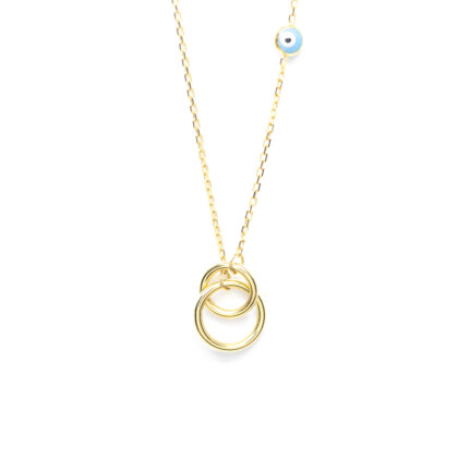 Κολλιέ μοντέρνο από χρυσό 14k με διακριτικό μάτι και κρίκους