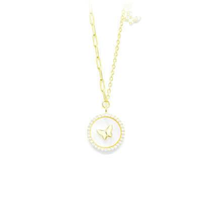 Κολλιέ χρυσό με πεταλούδα και mother of pearl