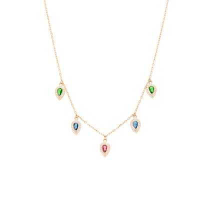 Κολλιέ Ροζ με σμάλτο και χρωματιστές ορυκτές πέτρες