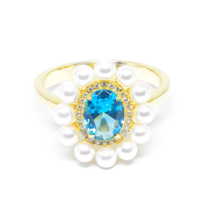 Δαχτυλίδι Χρυσό εντυπωσιακό με τετράγωνη πέτρα και μαραγαριτάρια