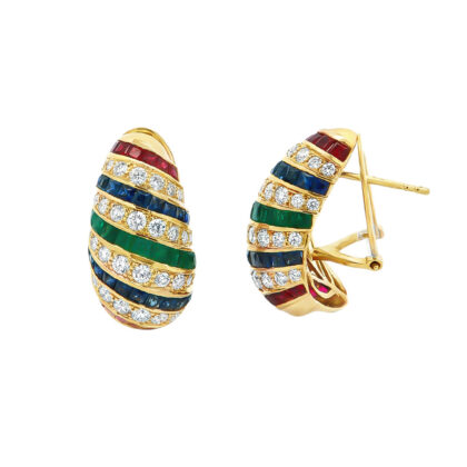 Σκουλαρίκια elegant διαμαντένια με ρουμπίνια,ζαφείρια και σμαράγδια από κίτρινο χρυσο 18k