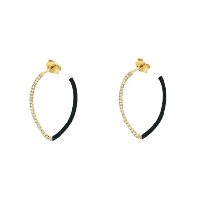 Σκουλαρίκια με μαύρο σμάλτο από κίτρινο χρυσό 18k με διαμάντια