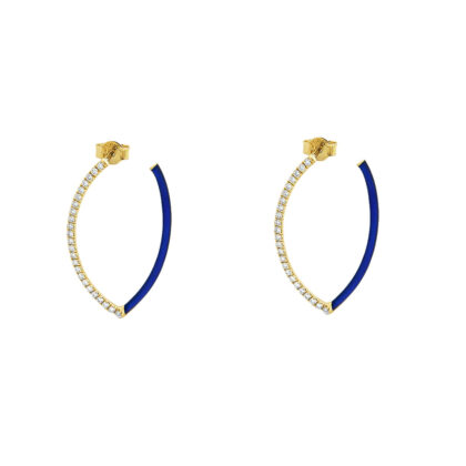 Σκουλαρίκια με μπλέ σμάλτο από κίτρινο χρυσό 18k με διαμάντια