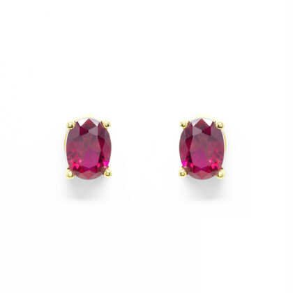 Σκουλαρίκια οβάλ με κόκκινες πέτρες από κίτρινο χρυσό 14k