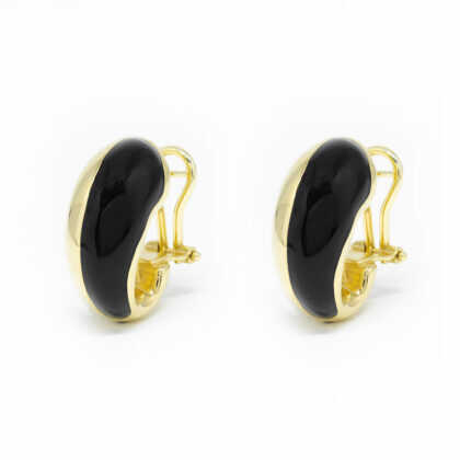 Σκουλαρίκια κρίκοι με μαύρο σμάλτο από κίτρινο χρυσό 14k