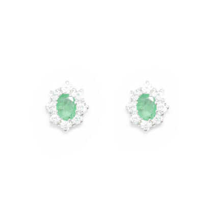 Σκουλαρίκια διαμαντένια elegant από λευκόχρυσο 18k με σμαράγδια