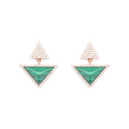 Σκουλαρίκια εντυπωσιακά με διαμάντια και πράσινο malachite