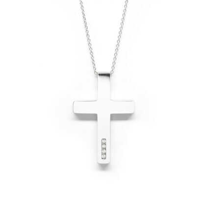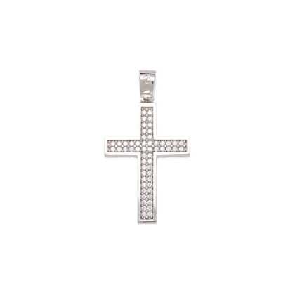 Σταυρός κλασσικός με διαμάντια και λευκόχρυσο 18k