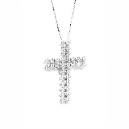 Σταυρός κλασσικός με διαμάντια και λευκόχρυσο 18k Casato