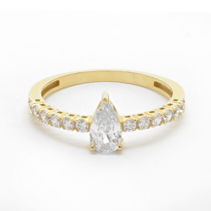 Δαχτυλίδι μονόπετρο pear από κίτρινο χρυσό 14k εντυπωσιακό