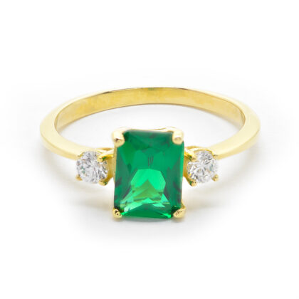 Δαχτυλίδι ροζέτα με πράσινη πέτρα emerald και cubic zirgons